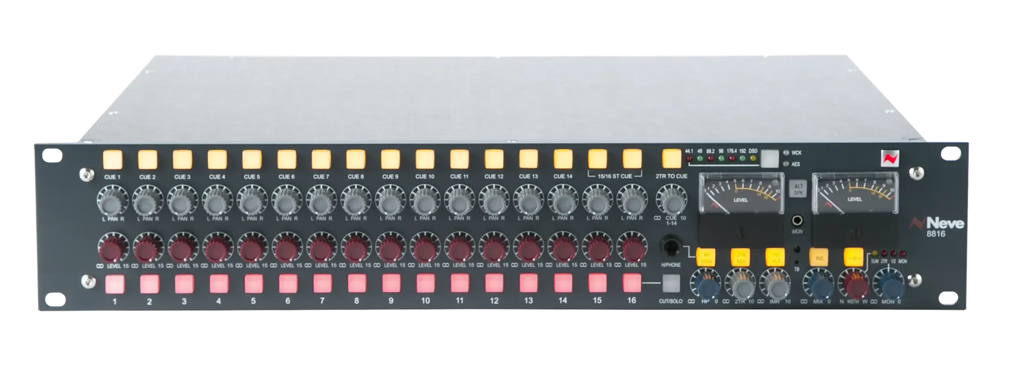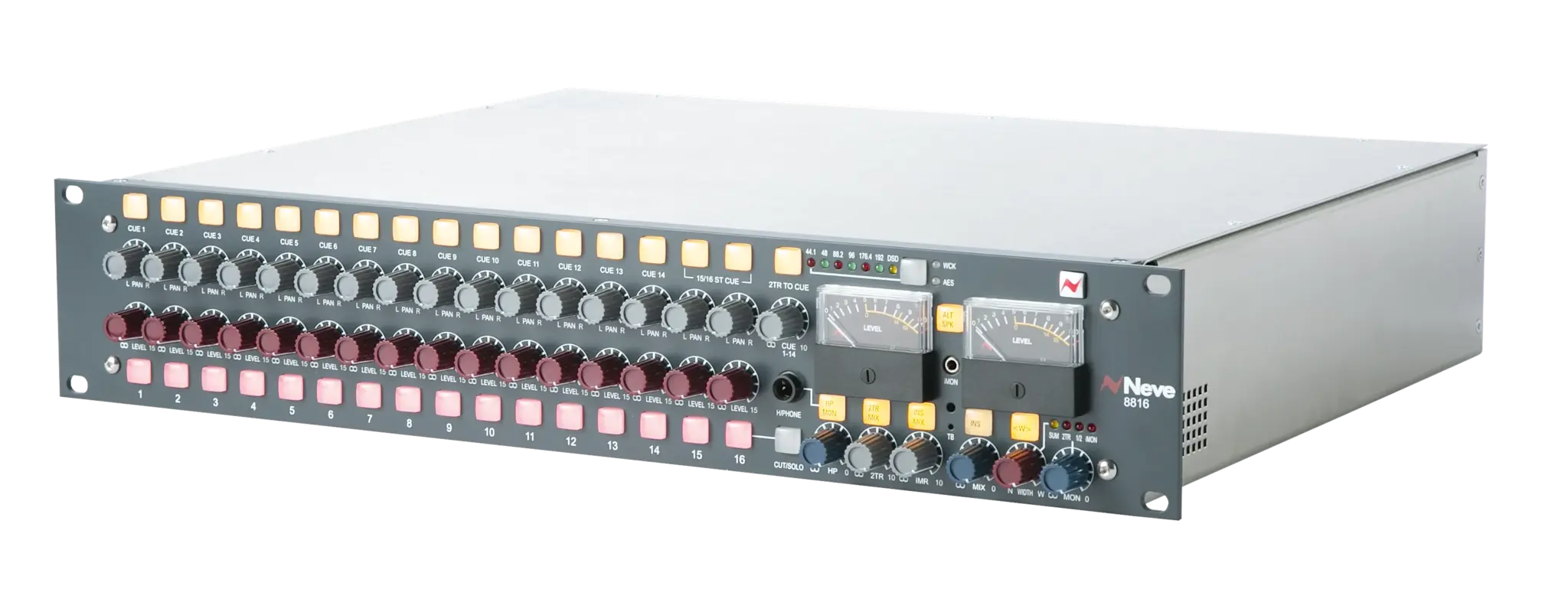Packed with Neve® large-format console features, the 8816 is ideal for tracking in the studio. Independent cue sends from all 16 channels, multiple headphone connections & controls and a built-in talkback system, the 8816 is the complete recording package for the small studio.