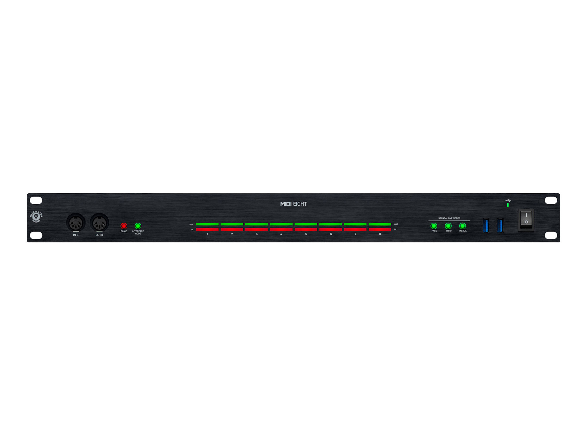 The MIDI Eight is class-compliant to function seamlessly under MacOS and Windows without the need for additional software. It can be bus-powered over USB when connected to your computer, or via the included DC adapter when you want to ditch the computer altogether. You also get a front-mounted In and Out for when you get a hot new piece of gear that you want to hook up quickly.