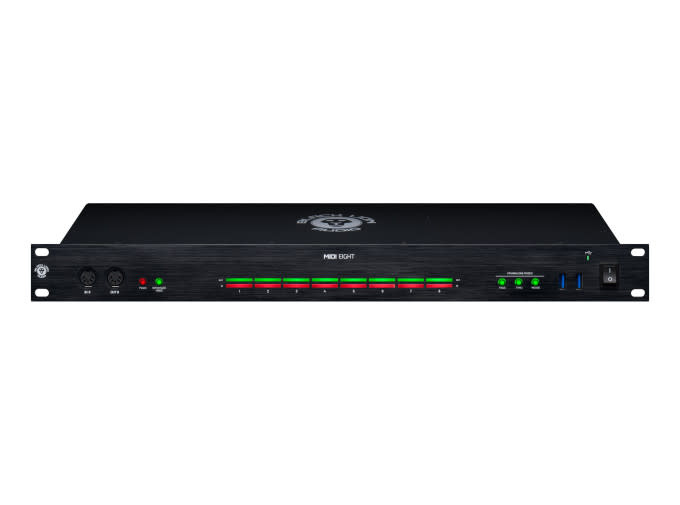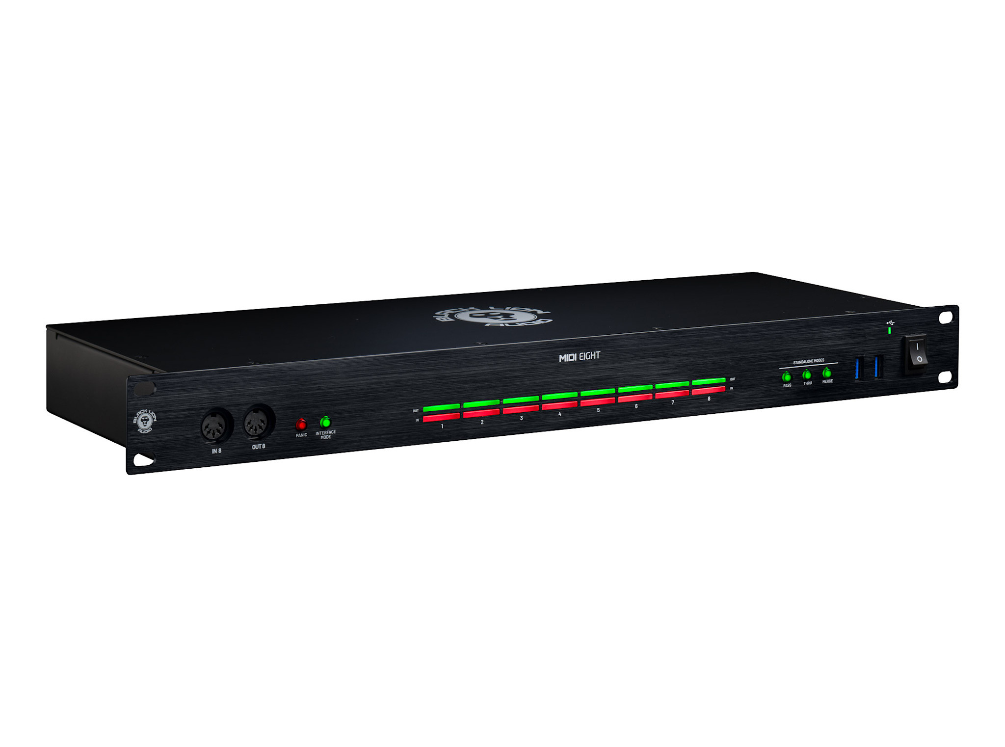 The Black Lion Audio MIDI Eight is an 8-in, 8-out MIDI interface that elegantly connects all of your MIDI synths, drum machines, controllers, and more… with or without a computer. You get eight MIDI input and output ports with 16 channels each; three useful standalone routing modes; a powered 5-port USB hub; and bold activity indicators for instant visibility on your MIDI traffic.