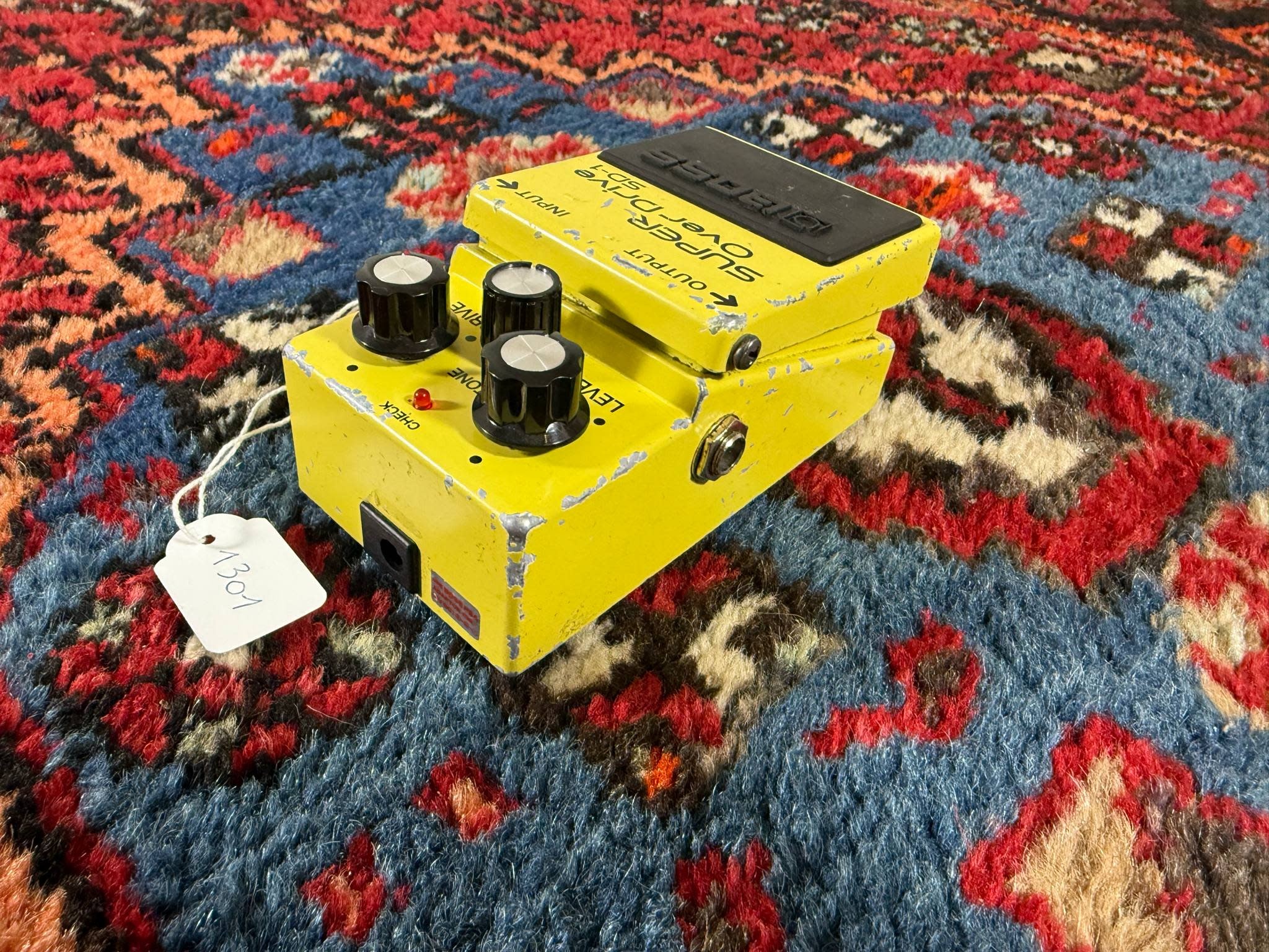 The BOSS SD-1 Super Overdrive is a classic guitar effects pedal known for its warm, natural overdrive and ability to enhance a wide range of tones. It's based on Boss's asymmetrical clipping circuit and is popular for both rhythm and lead playing.