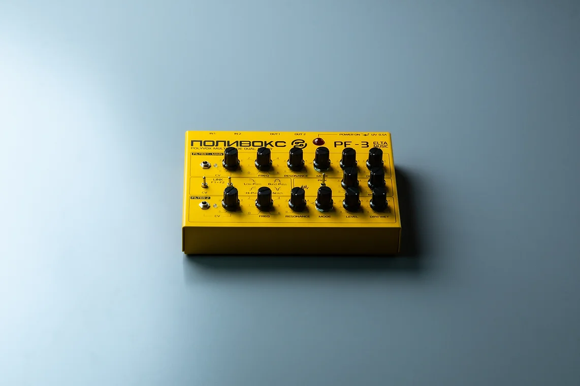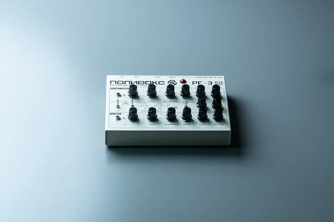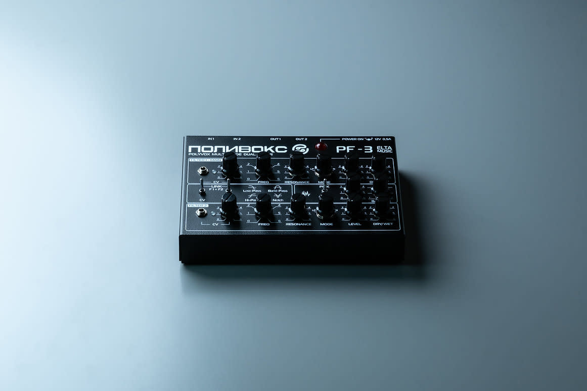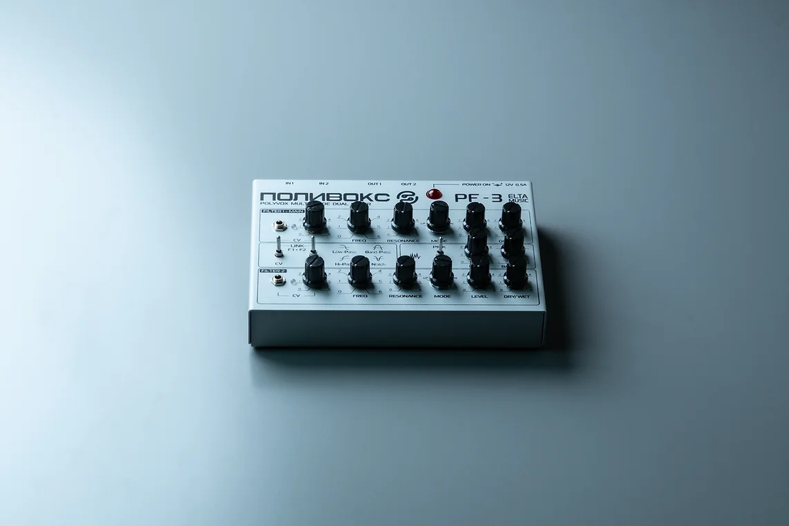 POLIVOKS PF3 MK2 double-stereo filter utilizes the classic Soviet filter chip for a unique and iconic filter tone. Two independent 12dB multi-mode filters that can be controlled by a single cutoff knob. Turning the filter into a 24dB filter, when connected in series. When connected in stereo, you can achieve interesting effects by using different modes to each channel. A noise generator is on board pre-filter and can be used separately as a source of white and pink noise. Volume as well as clean and processed signal balance per channel.