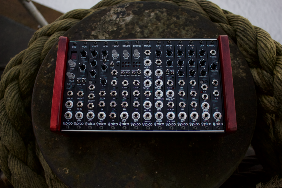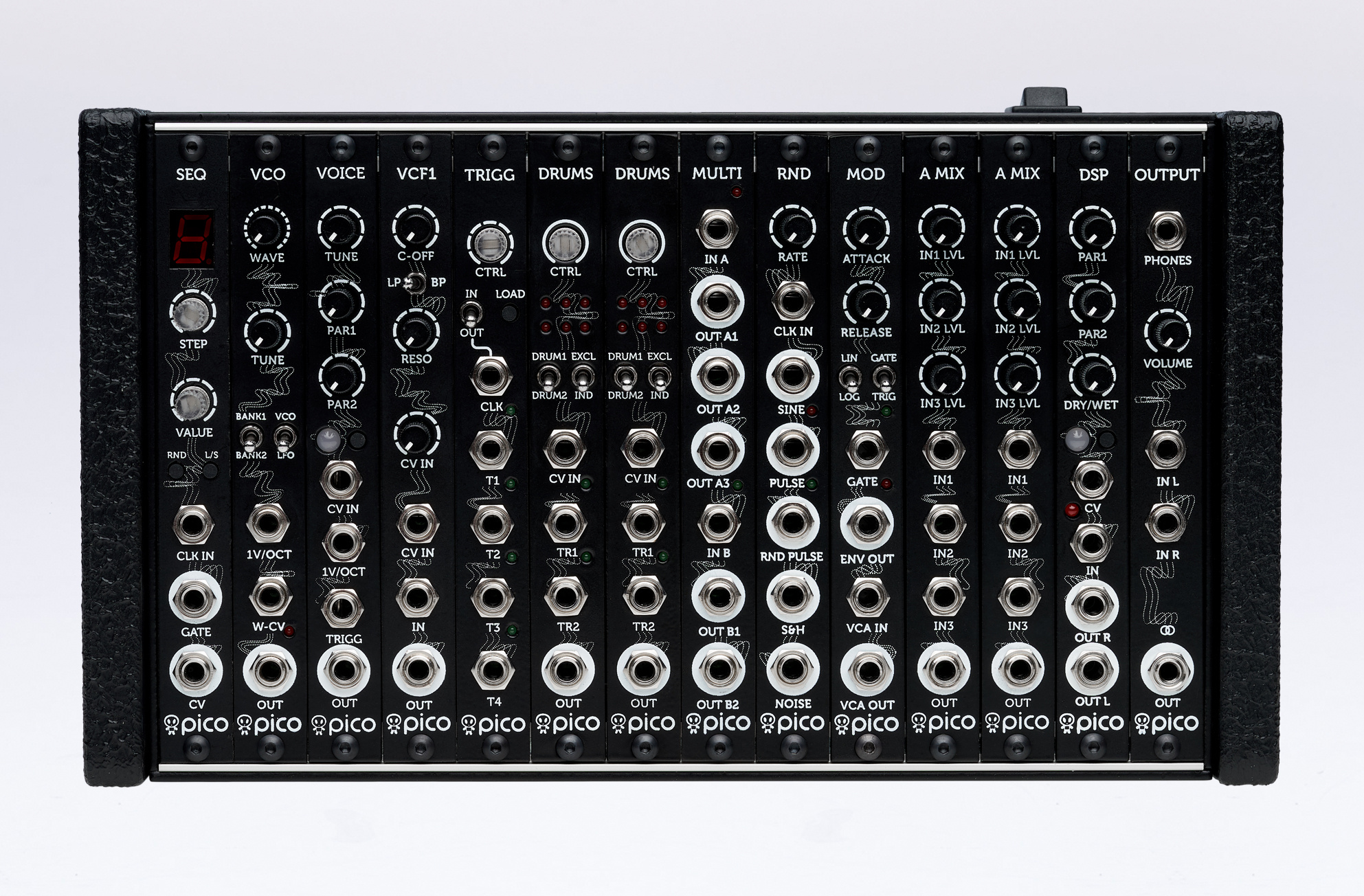 In its functionality this system is as good as the Pico System I, however, as there have been several additions to the Pico Series, for example, the significant Pico Voice, we decided to upgrade the Pico System to make it even more multifarious. There are two new modules in the system: the Pico Voice – a sound source, which gives quite a big timbral diversity, and the Pico Modulator, which replaces the Pico EG and the Pico VCA. That gives us a 3HP free space which we have filled with one more Pico A MIX for more handy control of the sound sources in live performances. Pico System II comes with external PSU, Pico Drum Programmer, wrench key and 20 patch cables.