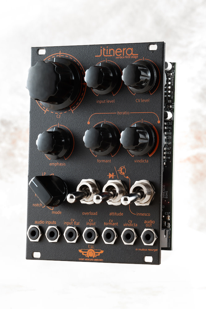 Itinera takes the original Vertice Analog Filterbank circuitry and bring it into the eurorack format.