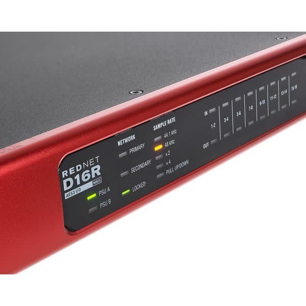 RedNet D16R MK2 is a 16x16 digital interface for Dante networks, with channel level control for individual inputs and outputs.
