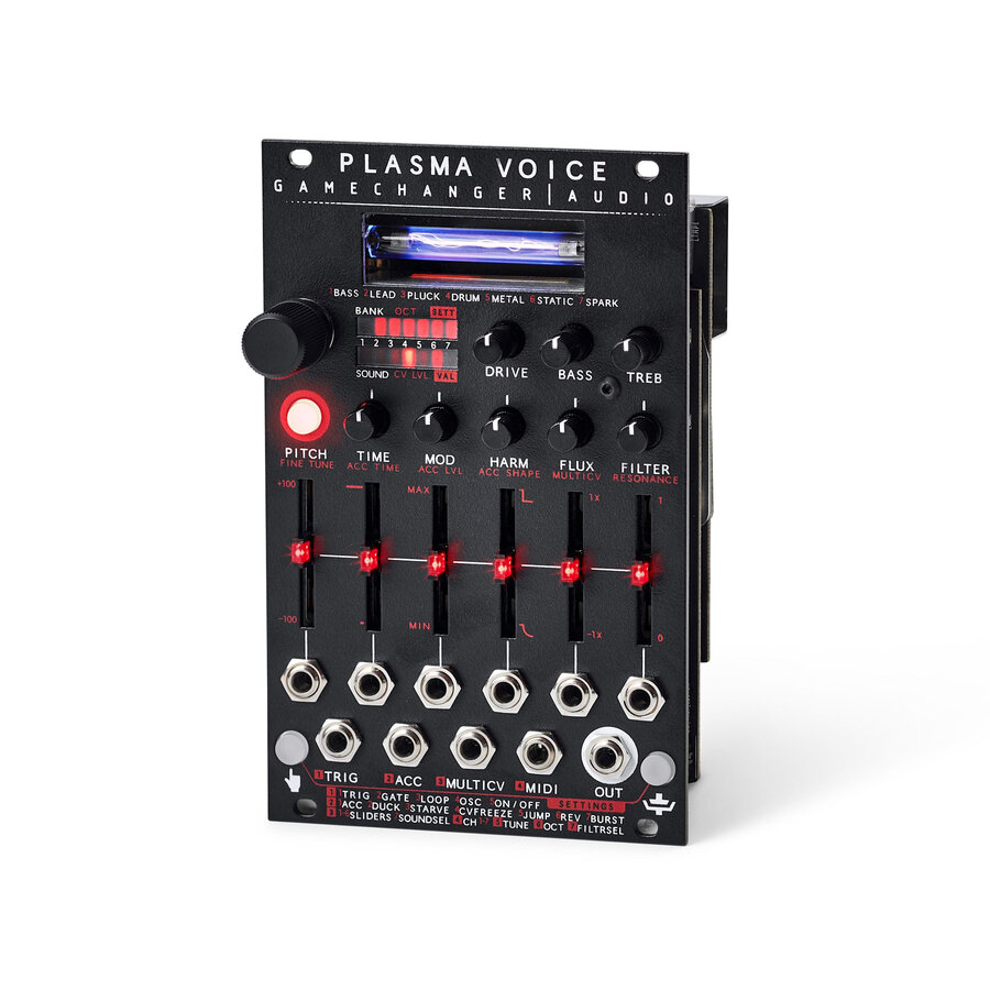 The PLASMA Voice is a monophonic Eurorack synthesizer module that produces sounds by controlling high-voltage electrical discharges between two electrodes in a custom xenon-filled gas tube. These discharges are converted to analog audio signal using a specially designed rectifier circuit. The result is a diverse range of electrifying tones that vividly capture the character and intensity of a vibrant blue electrical arc.