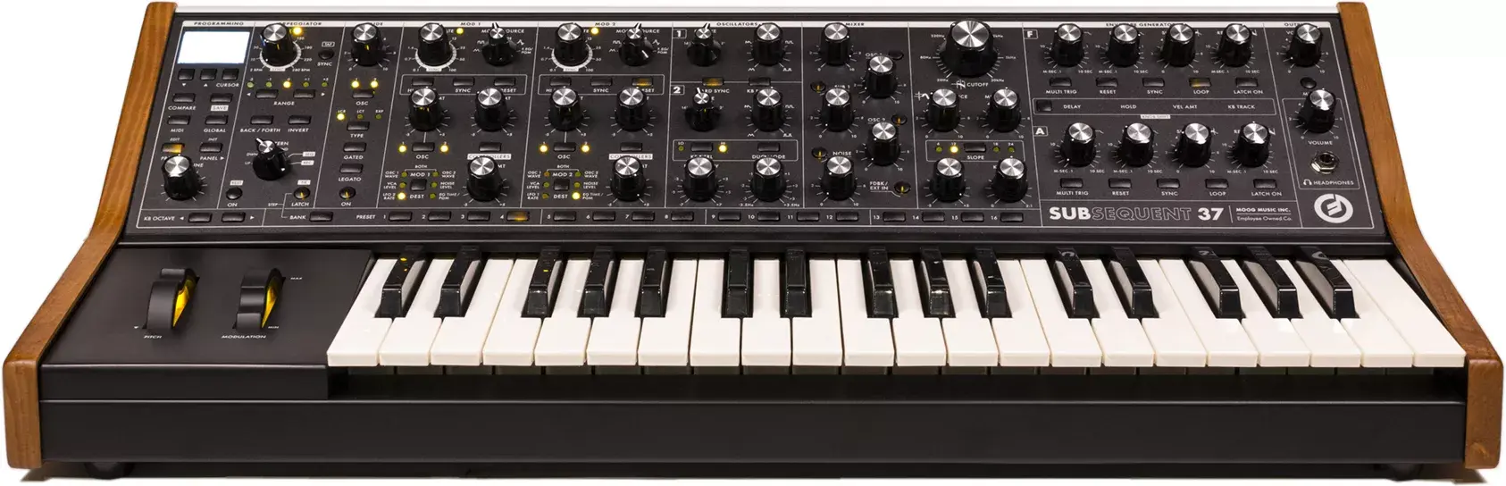 The Subsequent 37 is a (2-note) paraphonic analog synthesizer that builds upon the award-winning design of the ultra-powerful Sub 37 Tribute Edition. Its control panel is home to 40 knobs and 74 switches, placing a vast array of analog sound-design tools and onboard sequencing options immediately at your command. The Subsequent 37 improves upon its source through the implementation of a number of user-requested sonic and functional enhancements. Each enhancement maintains the magic and character of its predecessor while also providing access to new dimensions of sound and improved playability.