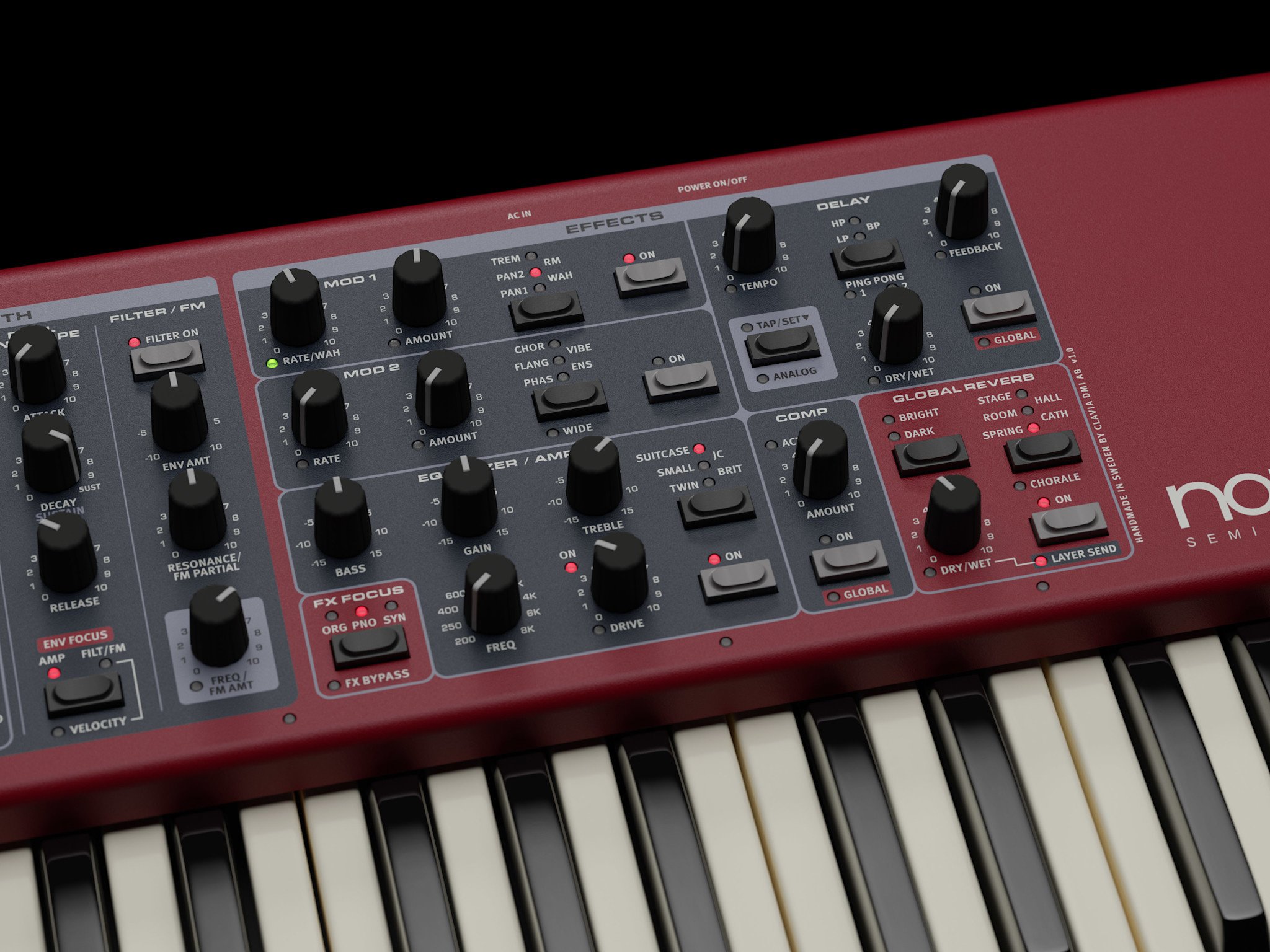 Synth section with sample playback, classic waveforms and FM synthesis (compatible with the Nord Sample Library)