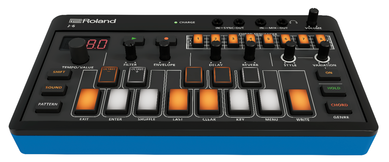 The J-6 Chord Synthesizer is an endless well of musical inspiration, pairing a powerful chord sequencer with the lavish tones of the renowned JUNO-60 synth. Generate soul-stirring song ideas in seconds, and experiment with styles and variations to coax dancing lines and rhythmic patterns from your chords. Add lush effects to frost your sound, and expand your possibilities by interfacing with other AIRA Compacts, MIDI hardware, and music production software.