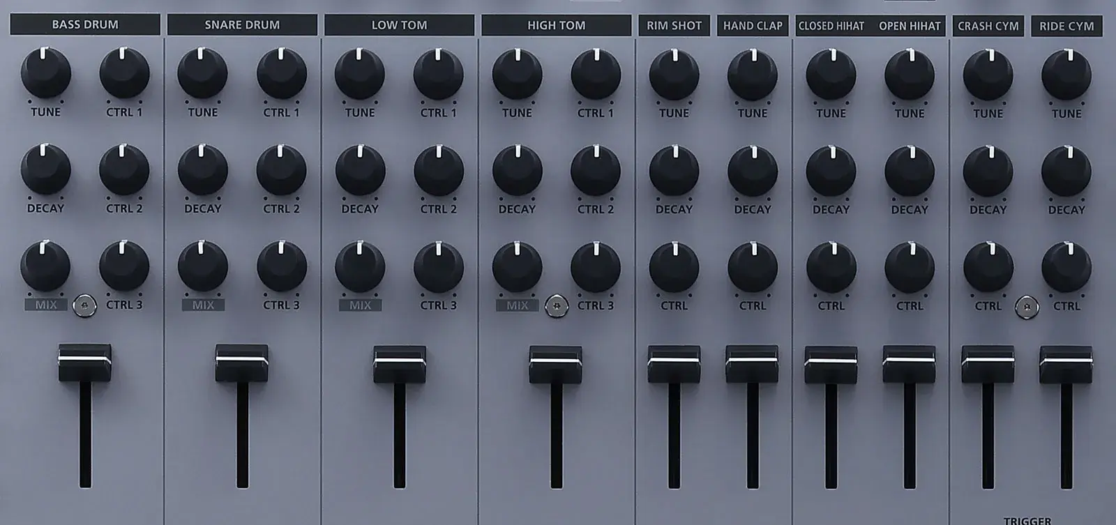● A trifecta of Roland’s classic analog TR sounds,