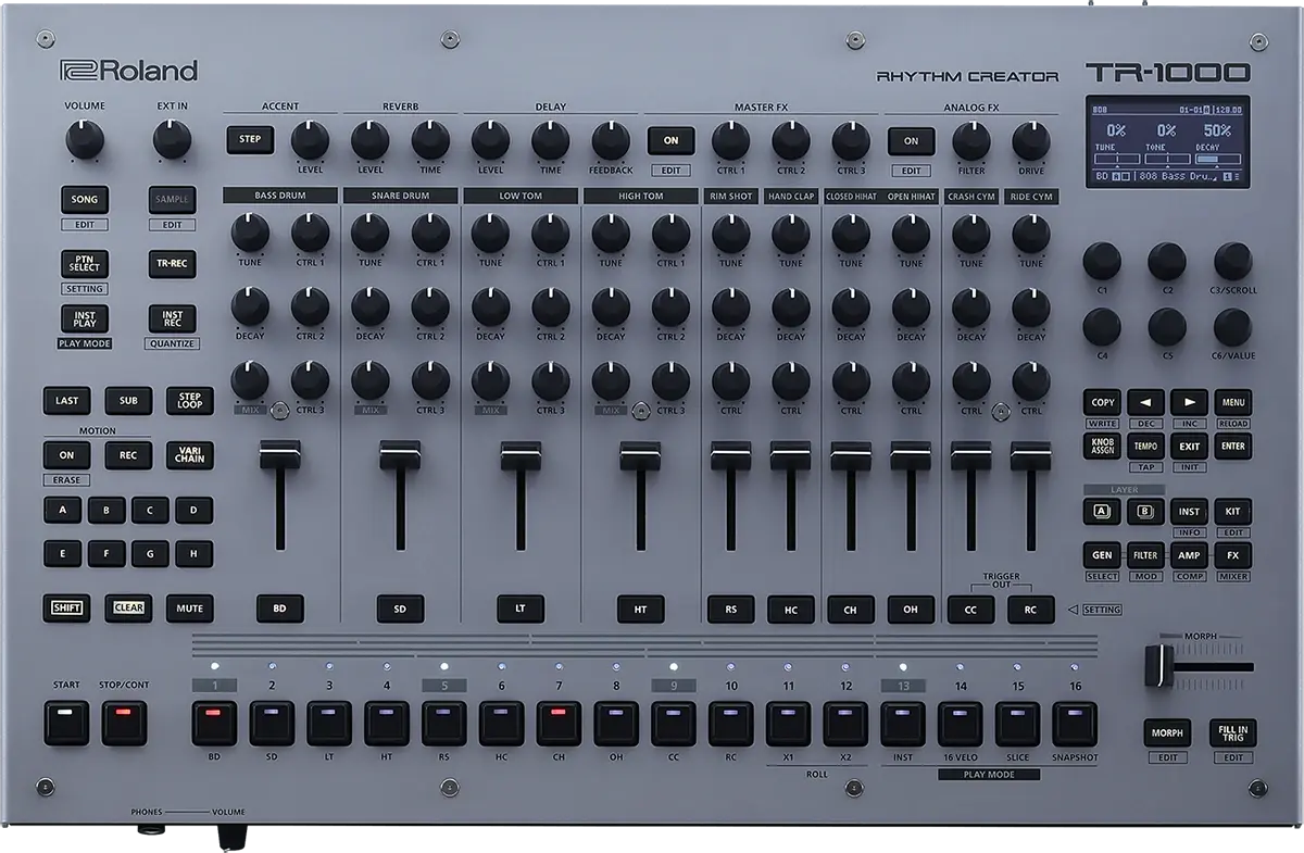 Carrying forward the legacy of the TR-808 and TR-909, the TR-1000 Rhythm Creator is Roland’s most powerful drum machine.