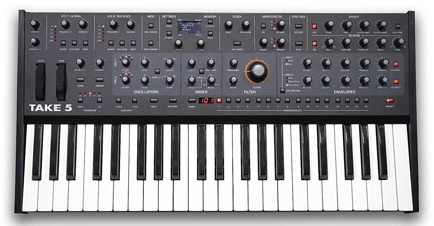 Take 5 is designated to be the most portable, full-featured, full-throttle VCO/VCF poly synth your customers have ever gigged, recorded, or jammed with.