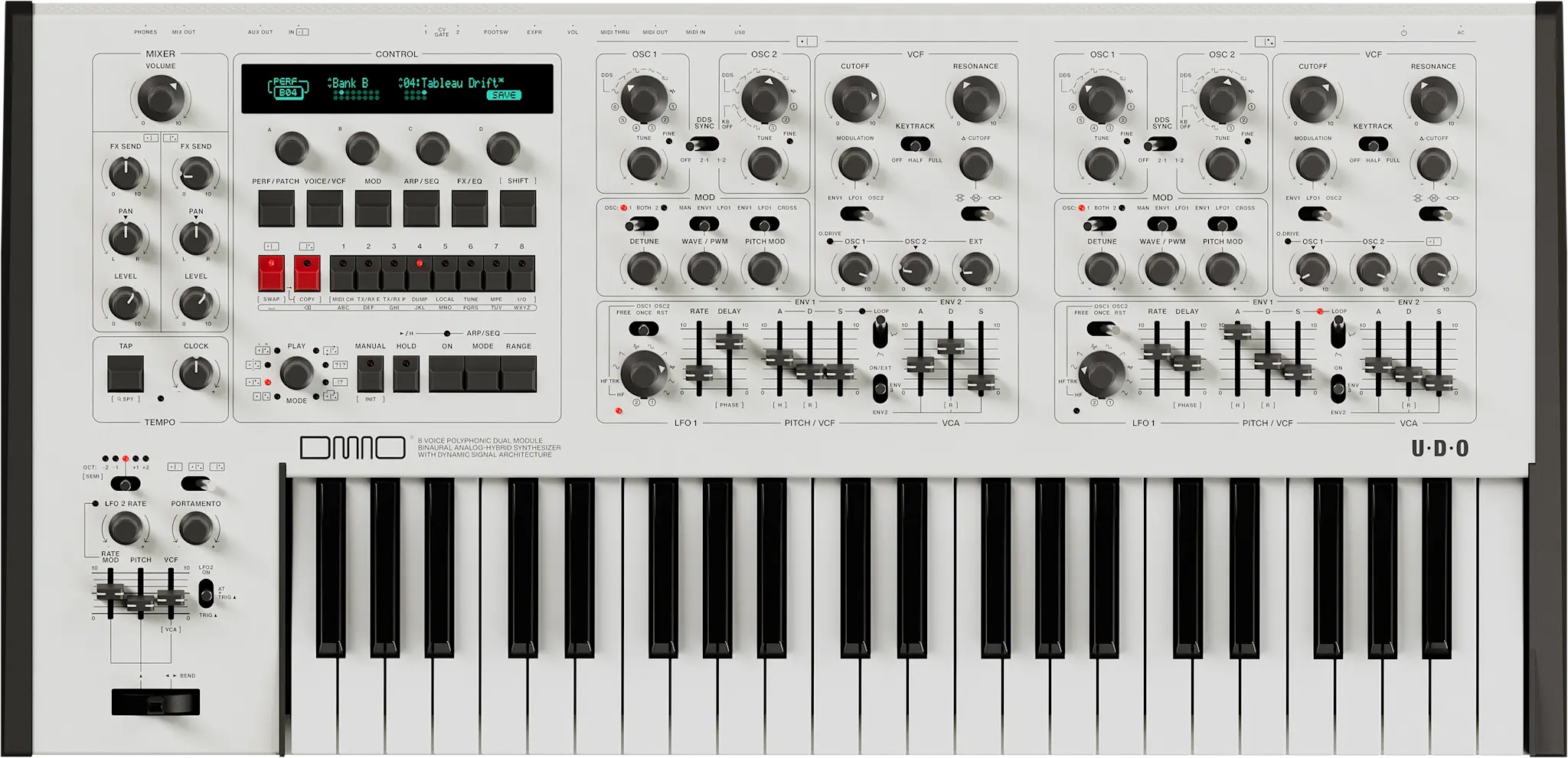 8 Voice Polyphonic Binaural Analog-Hybrid Synthesizer with Dynamic Signal Architecture